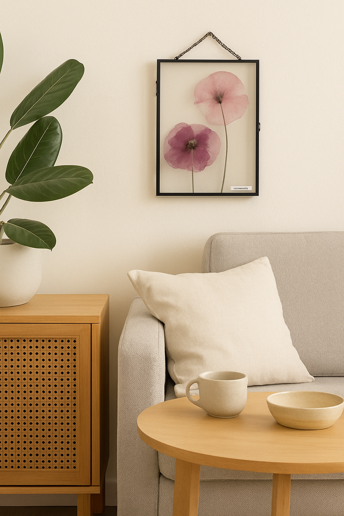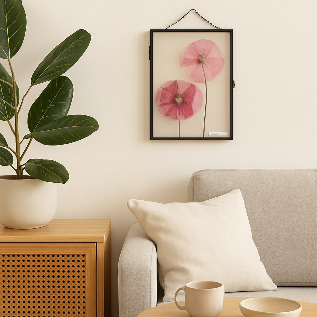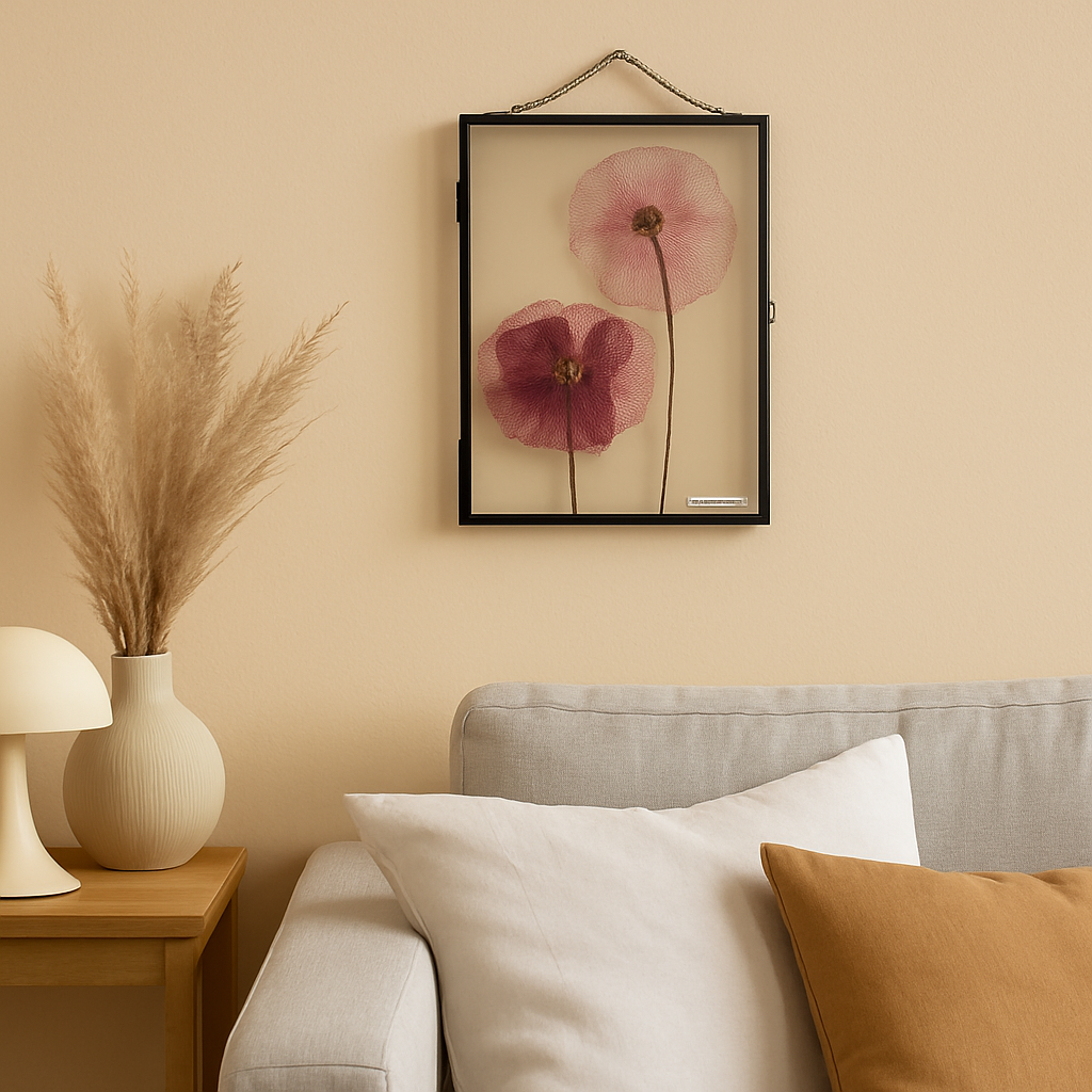 Elk kunstwerk wordt met zorg en vakmanschap met de hand samengesteld, waarbij de schoonheid van de natuur centraal staat. Van het plukken tot het inlijsten, elke lijst is een uniek stuk, rechtstreeks uit de natuur in jouw huis!