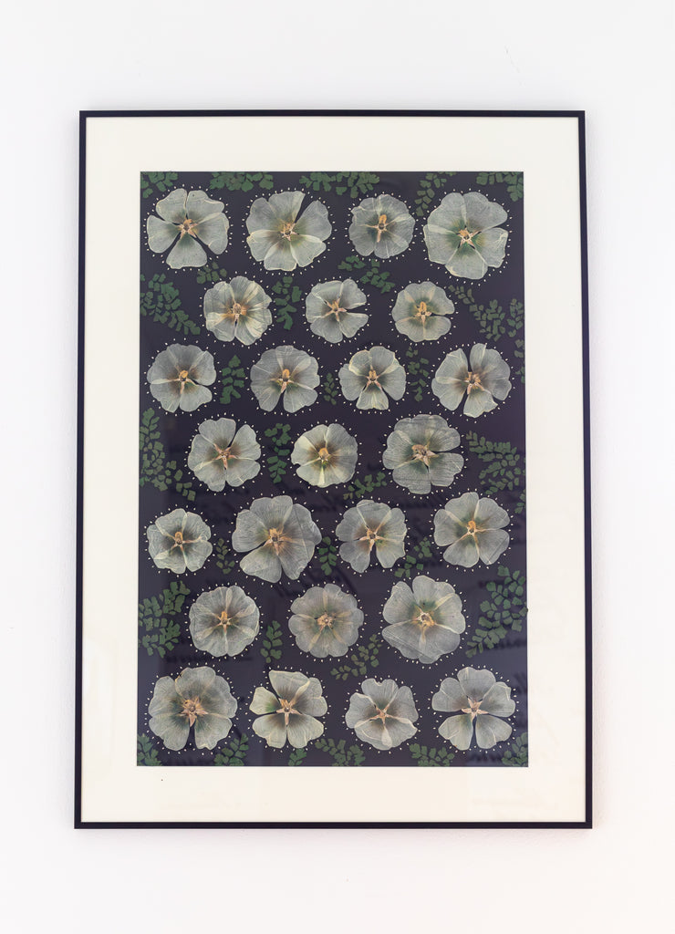Dit schilderij is gemaakt van stokrozen, adiantum, sesamzaden. Kan zowel horizontaal als vertikaal opgehangen worden. Past in elk interieur. De wissellijst is van een hoogwaardige kwaliteit ( merk: change it).