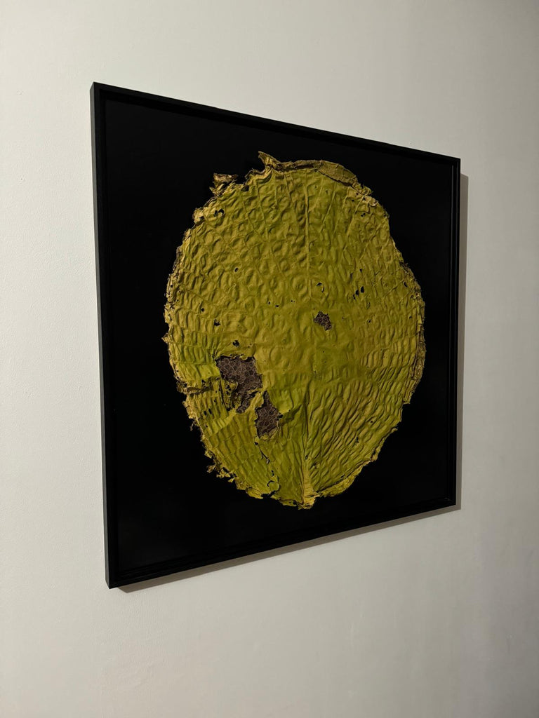 Dit schilderij is gemaakt van de Victoria reuzenwaterlelie blad. Past in elk interieur. De baklijst is van een hoogwaardige kwaliteit en de achtergrond is (glans) zwart.