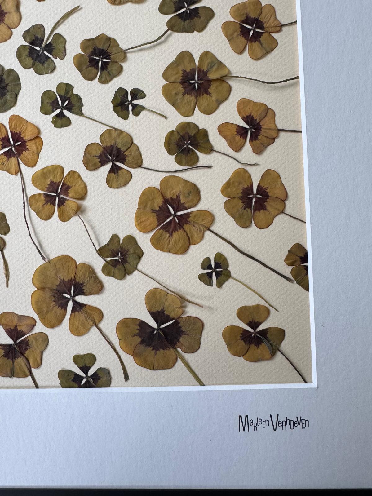 Dit schilderij is gemaakt van klavertjes vier.  Good luck. Past in elk interieur. De wissellijst is van een hoogwaardige kwaliteit ( merk: change it).